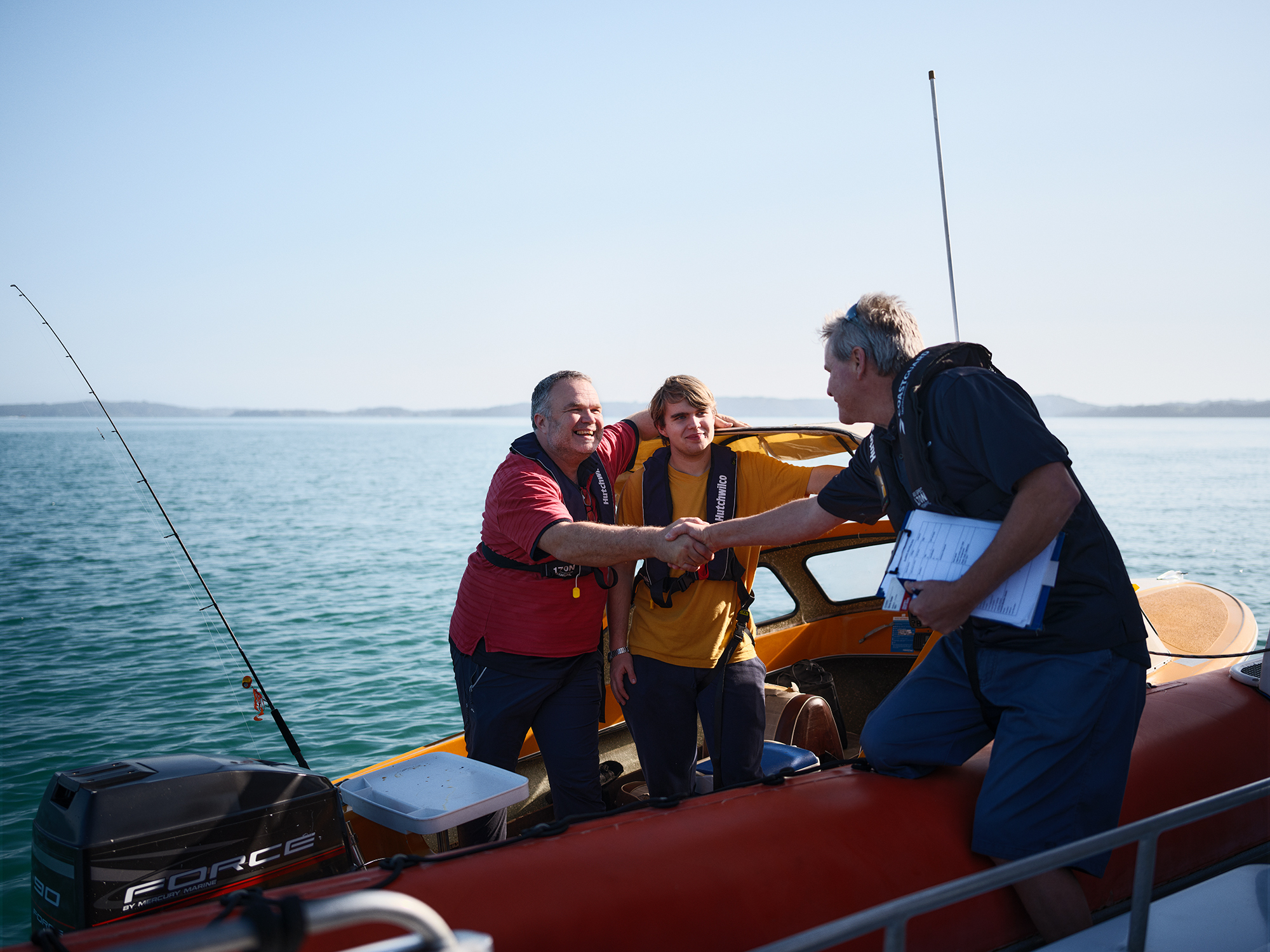 If caught out: Despite your best efforts, you might find yourself in a difficult sea state. If so, slow down as reduced speed will help maintain your control, and change course adjusting for swells and chop to keep the boat as steady as you can. Stabilise your boat by stowing loose gear and get your crew to sit low and in the middle of the hull to further improve stability and safety, especially in smaller boats.