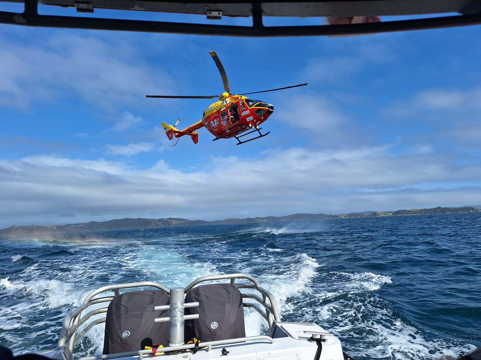 Four Coastguard Maraetai volunteers responded quickly, arriving on scene at 10.25am. The crew provided first aid to the skipper, stabilising them and making them as comfortable as possible. Upon the arrival of the Auckland Westpac Rescue Helicopter, two critical care paramedics and specialist equipment were winched down to Maraetai Rescue One, where they were transferred onboard to provide medical care to the patient. A decision was then made to transport the patient by sea to Kawakawa Bay for transport by rescue helicopter to hospital for further medical attention.
